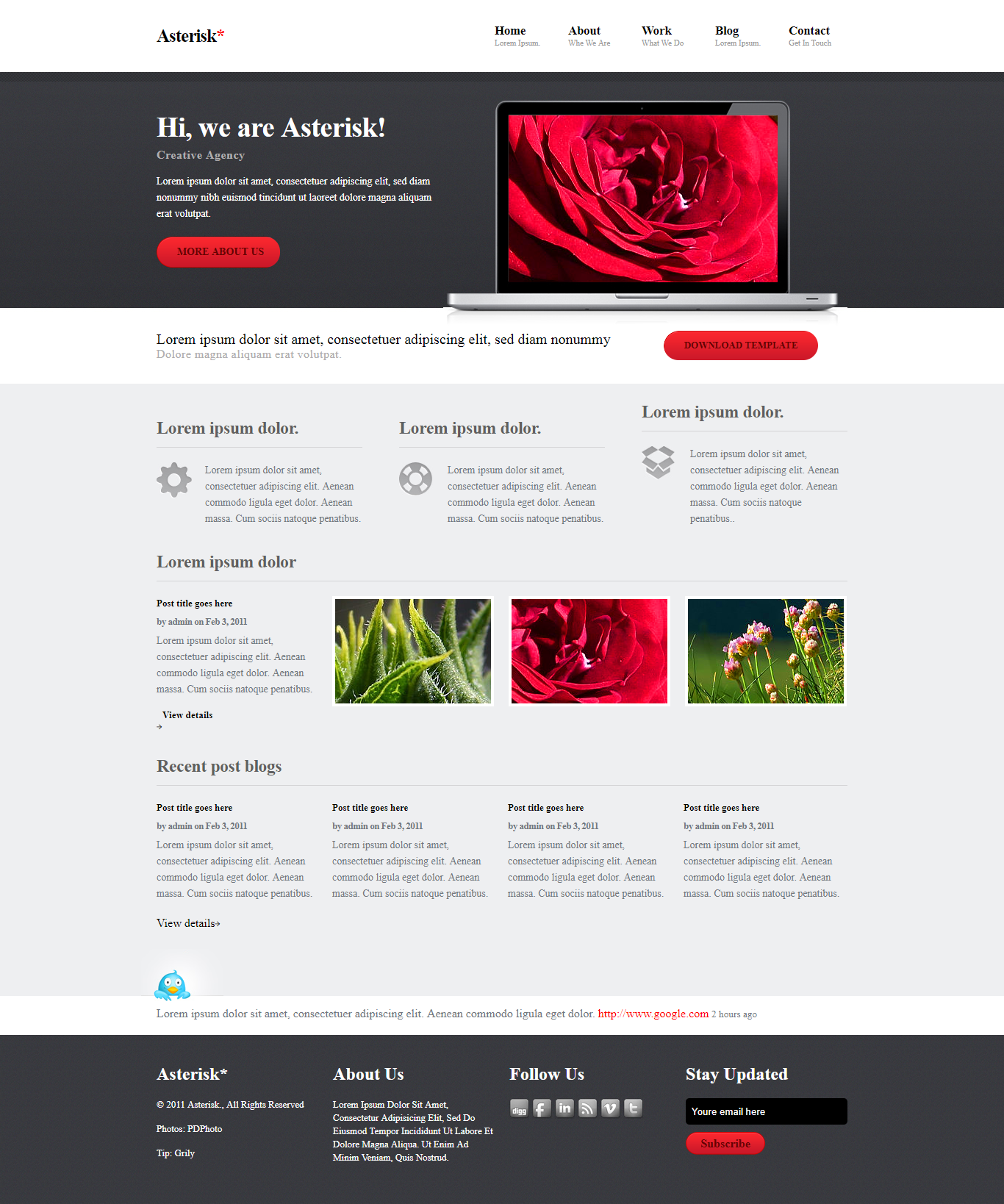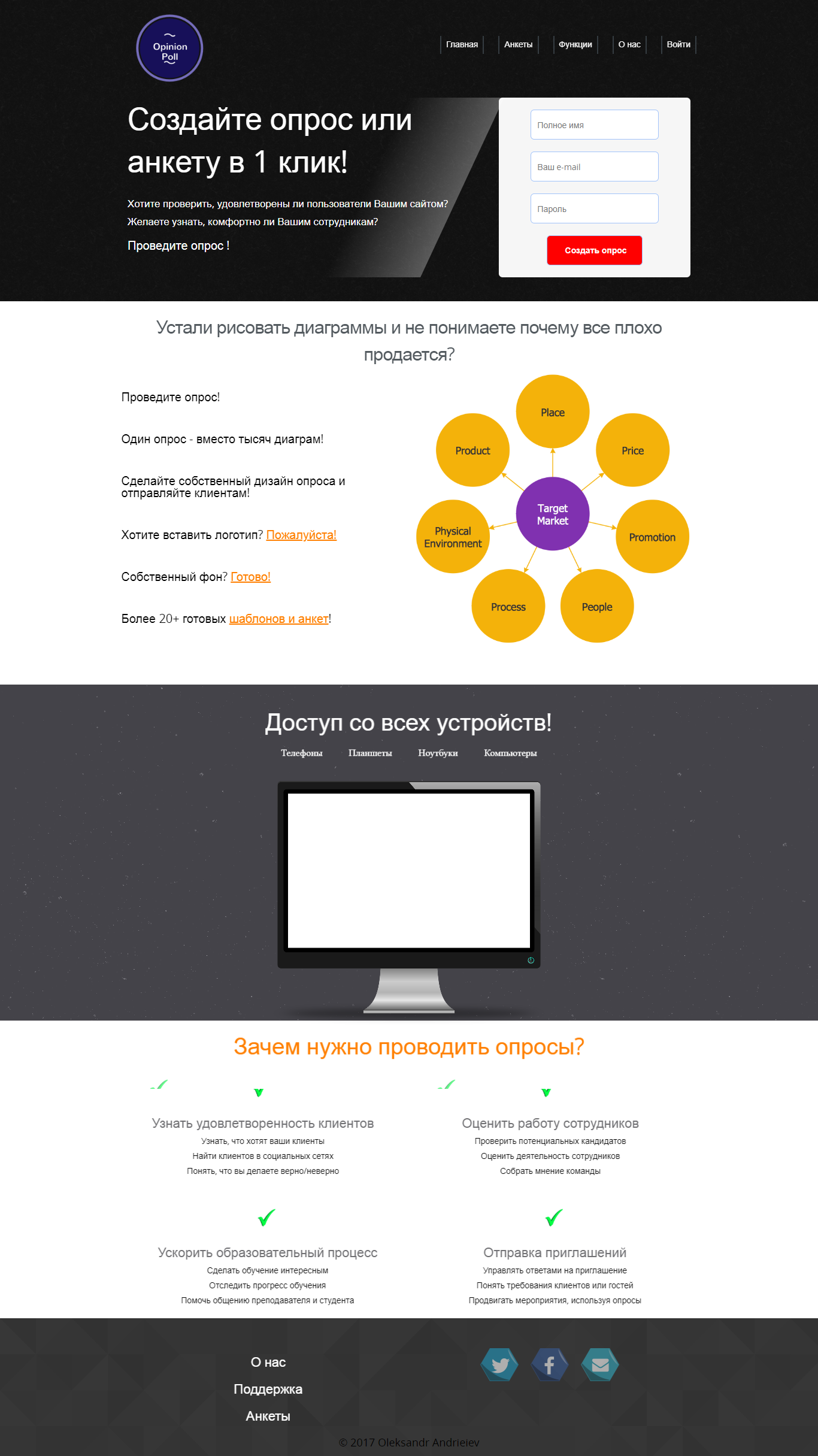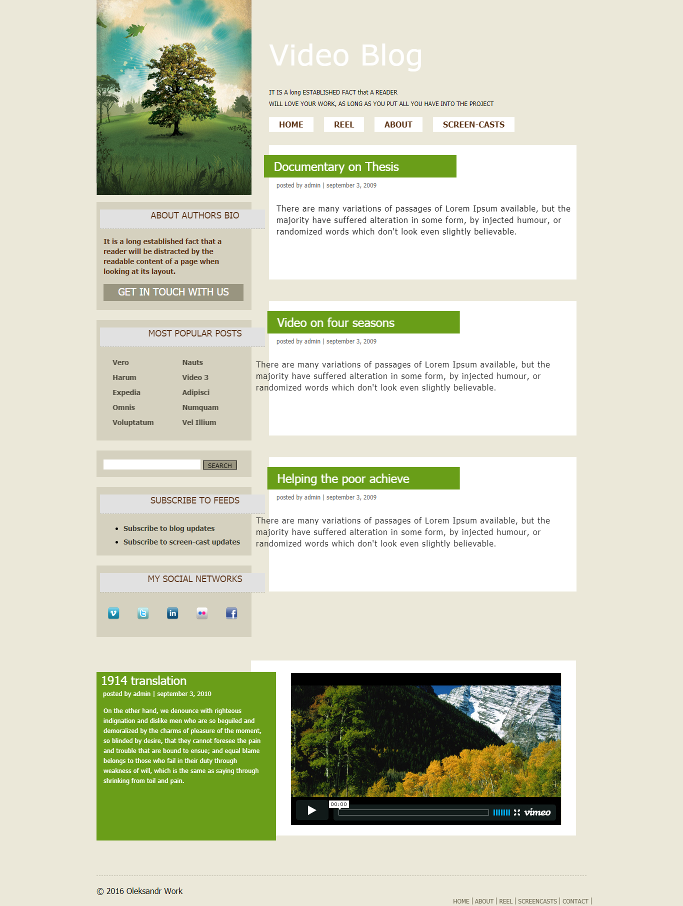 A standard project created with flex, smart-grid, Less, Jquery, JS and etc.. In the project I used optimized template (only PUG, only Less) and build that in Gulp. Using a template was a very simple, very fast and I got a lot of experience experience when using PUG and working with GULP.